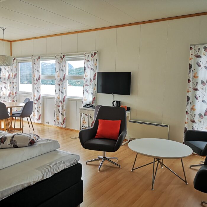 Med en fantastisk utsikt over Tjeldsundet kan du nyte utsikten og oppholdet i vår suite «Tjeldsund». Suiten har stor dobbeltseng og i tillegg mulighet for oppredning til to i...
